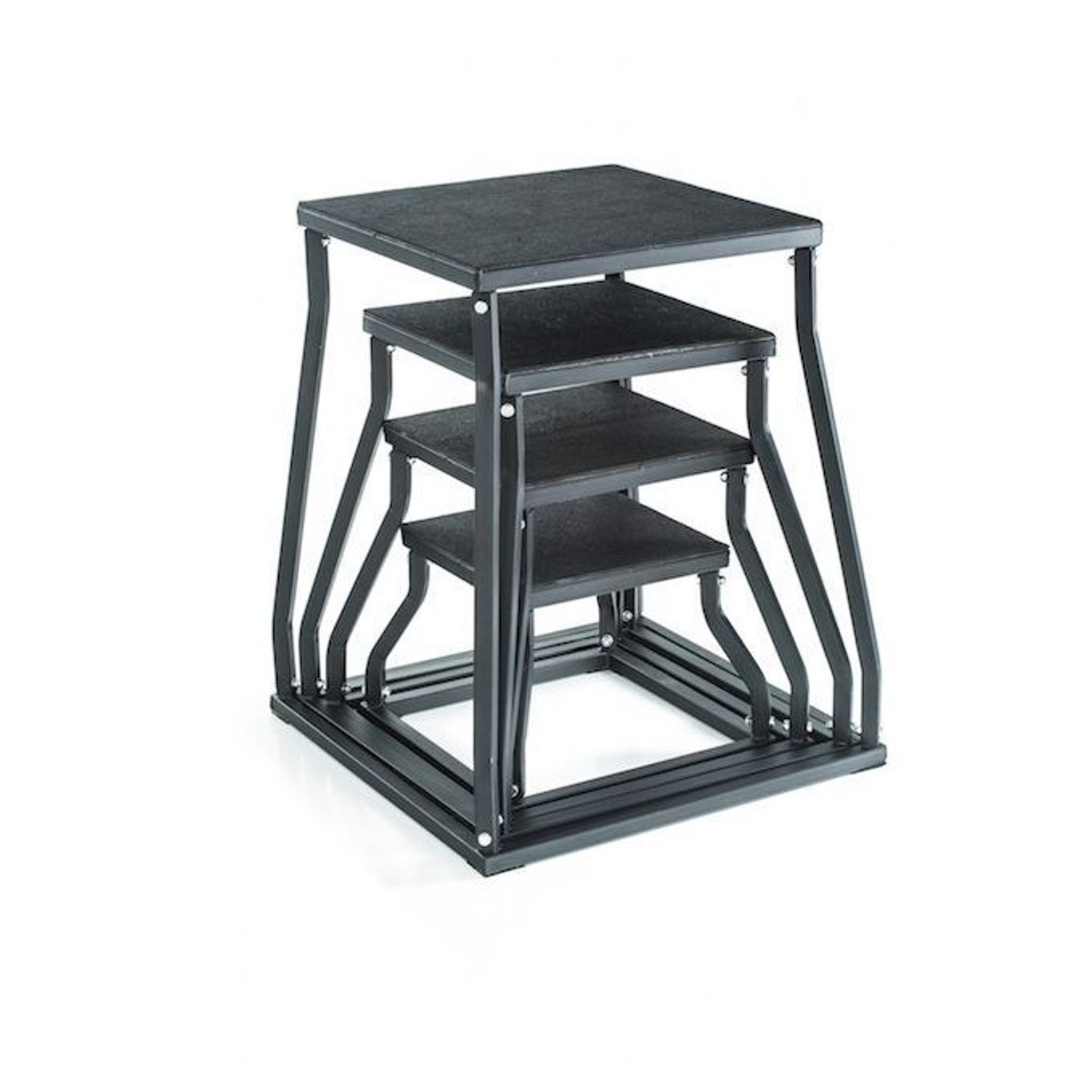 Plyoboxarna är gjorda av metall och har en stödram under lådan. Plyoboxarna är belagda med halkfritt gummi, vilket gör hoppövningarna trygga att utföra. Plyoboxarna finns i fyra olika höjder (30 cm, 45 cm, 60 cm, 75 cm), så alla hittar säkert en höjd som passar dem.